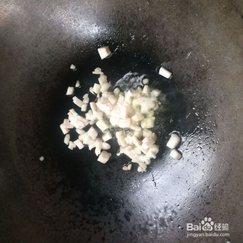 炒锅小火烧热,下肥肉丁练出油,当肥肉丁变成黄黄的小小的就可以捞出或者留着锅里和菜一起炒着吃。