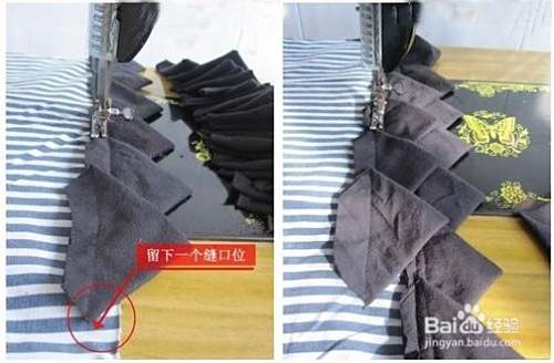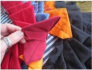 车好三角布料:把剪好的三角形布料用大的车外面,里面的用越来越小的车上,