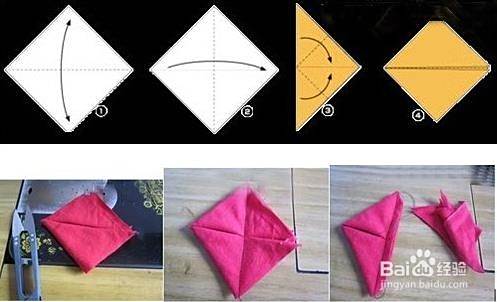 折成三角形:把剪好的正方布料对角裁缝车好,