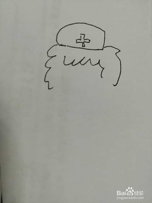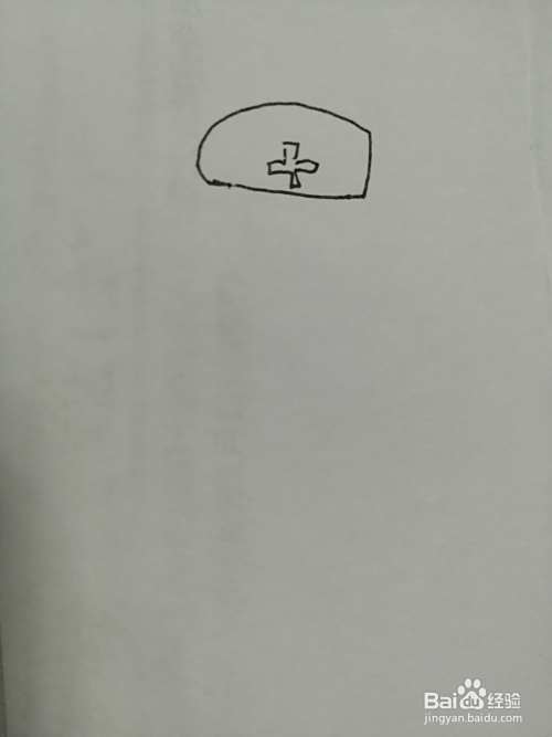 第一步,我们先把简笔画小护士的头上的护士帽画出来。