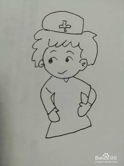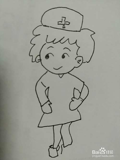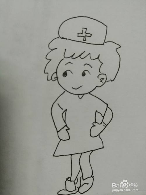 第七步,最后把简笔画小护士的两只小腿画出来。简笔画小护士就画好了。