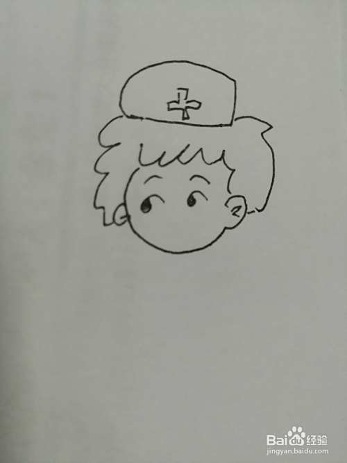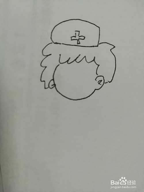第二步,接着继续画出简笔画小护士的卷卷的头发部分。