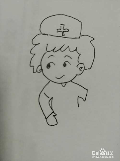 第五步,接着继续画出简笔画小护士的两只小手臂。