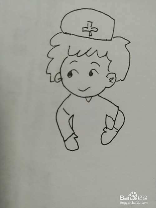 第六步,然后把简笔画小护士的衣服部分画出来。