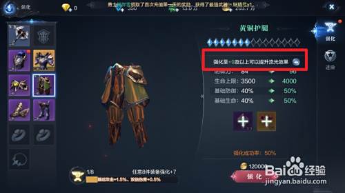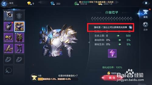 然后我们将装备强化到7级即可让装备发光。