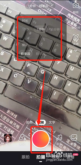 根据自己所需调整视频的时长,并点击下方按钮进行拍摄视频即可。