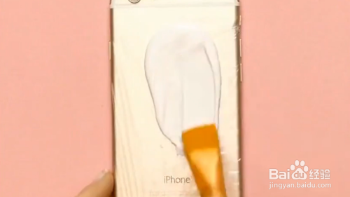 在手机后盖上覆盖一层保鲜膜,滴加适量白胶并用刷子涂抹均匀