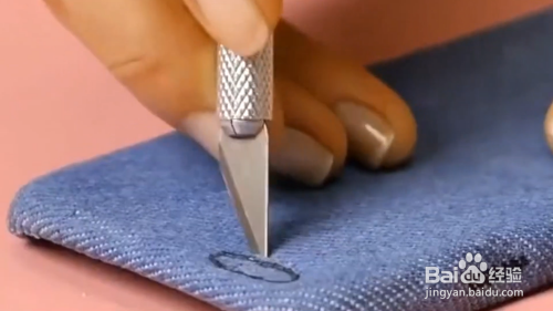 首先按照手机大小用笔在牛仔布料上标记好轮廓