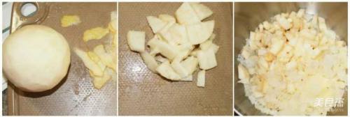 3雪梨洗净去皮,切成小块,切成小块更方便煮,而且更方便宝宝咀嚼哦。