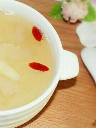 6出锅前10分钟放入枸杞。枸杞不要放太多,我煮的比较多,是全家份,宝宝一个人喝放2-3颗就可以了。