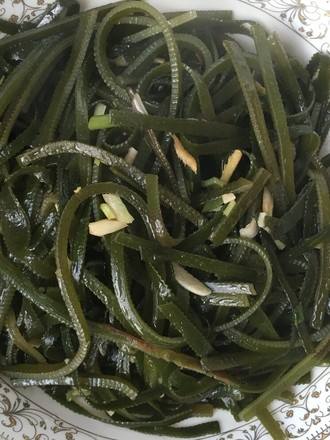等海带丝五六成熟,放入醋和盐,翻炒至熟透