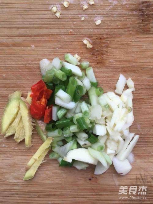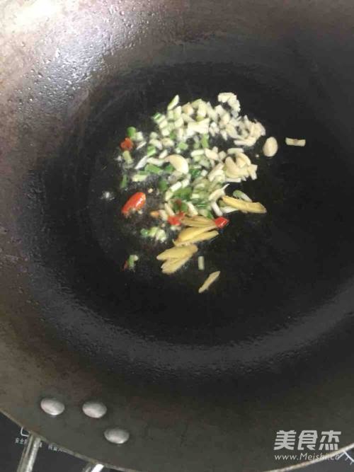 等油开了,放入葱姜蒜辣椒爆炒出香味。