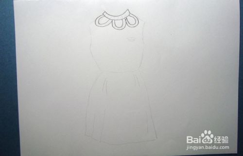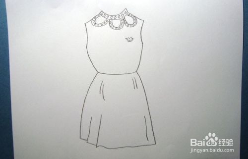接着,用黑色的彩铅笔画出漂亮的无袖长裙的花纹和装饰图形部分,如下图所示。