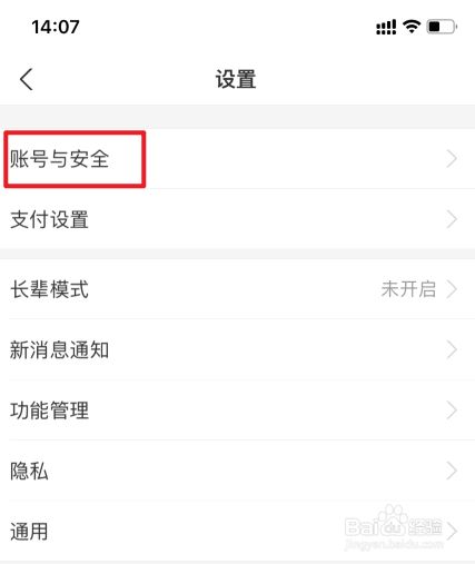 1点击账号与安全 在支付宝设置内选择账号与安全的选项。