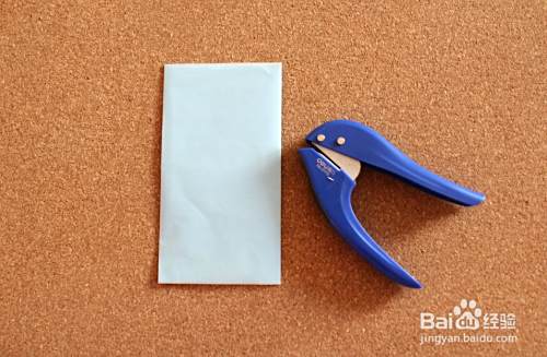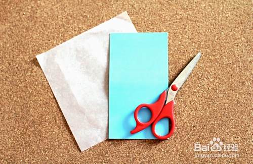 用剪刀在蓝色卡纸上剪出长方形。准备与长方形等高,2倍宽度的透明纸。