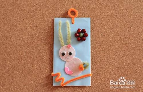 用彩色海绵纸剪出星星和心形的装饰贴片,在用粉色彩笔为兔兔画出粉嫩的小脸蛋。这样处理过后,一只生动又可爱的小兔兔就做好啦!