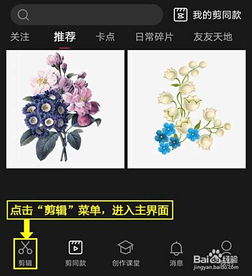 开始创作。点击“剪辑”主界面顶部的“开始创作”。