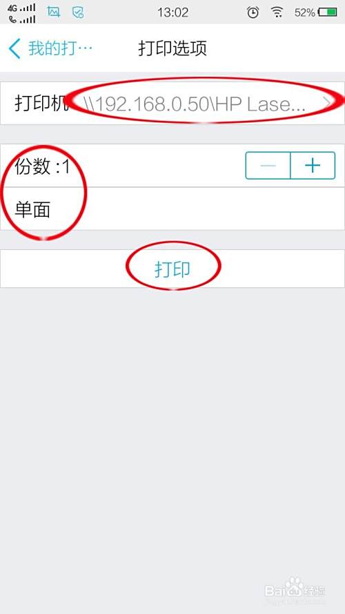 6.之后打印设置,选择打印机,打印几份,单面还是双面,都设置好后,然后“打印”。(此项上面打印机的选择是你同步电脑上的打印机安装状态的)如图