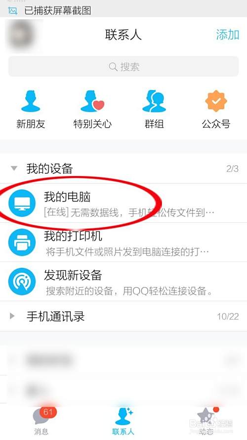 2.下面在手机QQ上操作,登陆QQ后,点击下方的“联系人”,打到上方的“我的设备”。如图