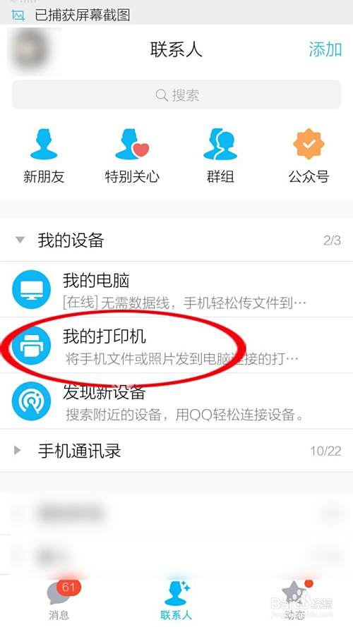 3.点开“我的设备”,找到“我的打印机”点击进入。如图