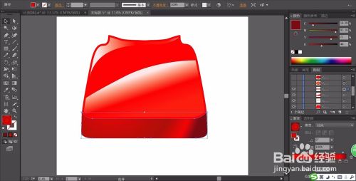 最后,我们用红白色的渐变填充听筒的电线路径,再用圆形工具画出电话机的阴影路径并用灰色的渐变填充,完成红色电话机产品设计。