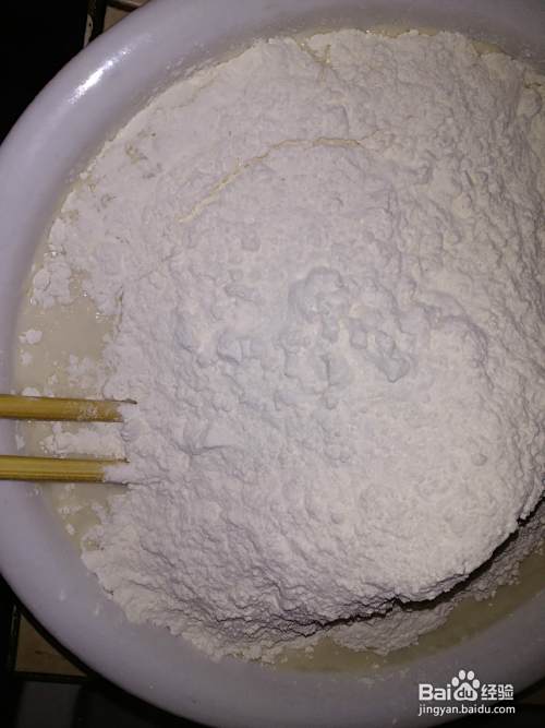 倒入面粉,搅拌成穗状揉成面团
