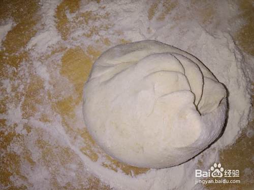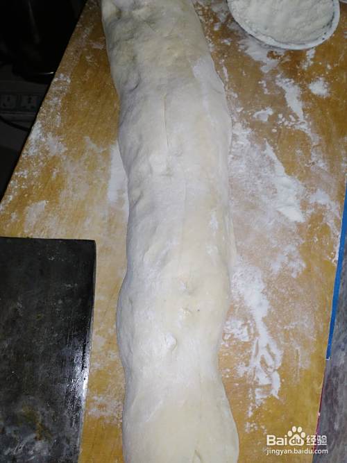 面板上方薄面,把面团倒出来,放在案板上反复揉的滋润后,弄成长条