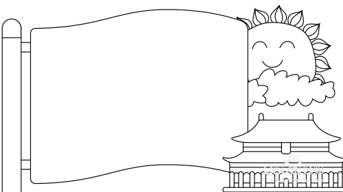 城门上方,旗子边框右侧,画一轮太阳。