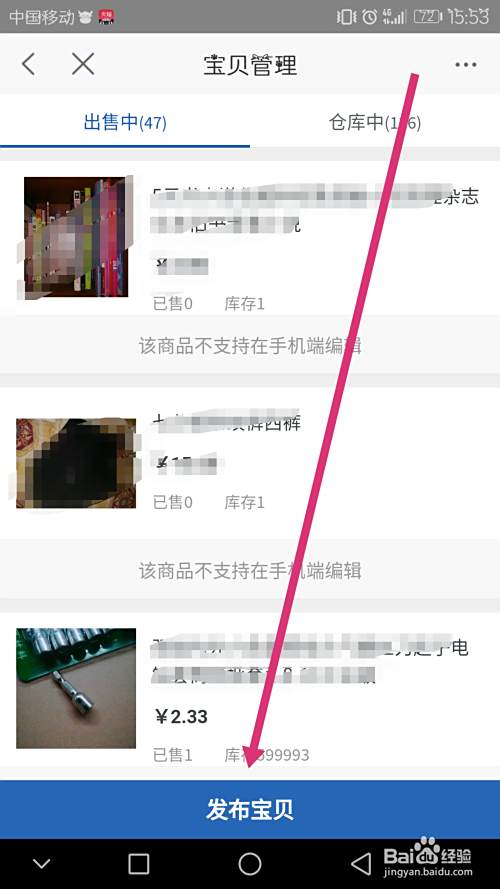 然后在宝贝发布里面最下面有一个【发布】可以点击发布