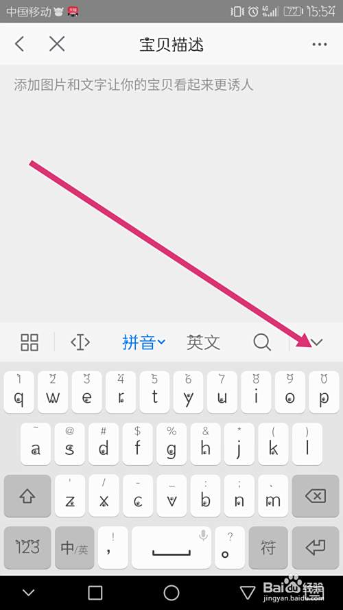 宝贝描述这里是编辑宝贝的详情页面,可以发一下宝贝细节图片还有宝贝的介绍,以及宝贝的参数什么的。照片的话把文字输入窗口缩小,就会看到添加图片的选择。