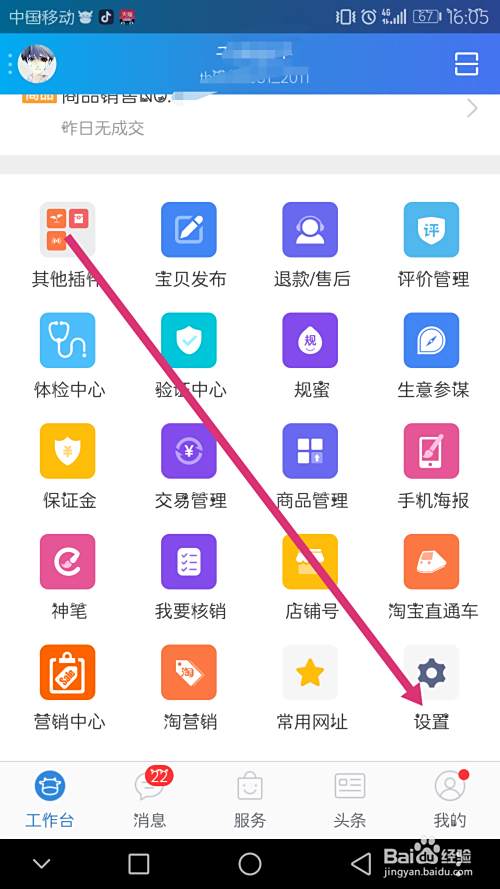 登录上你的帐号后,在页面下滑,有个【设置】,没有用过千牛的卖家需要自己设置添加【宝贝发布】