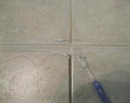 瓷砖缝隙已经被修复好了,我们再将瓷砖上多余的牙膏擦下来;