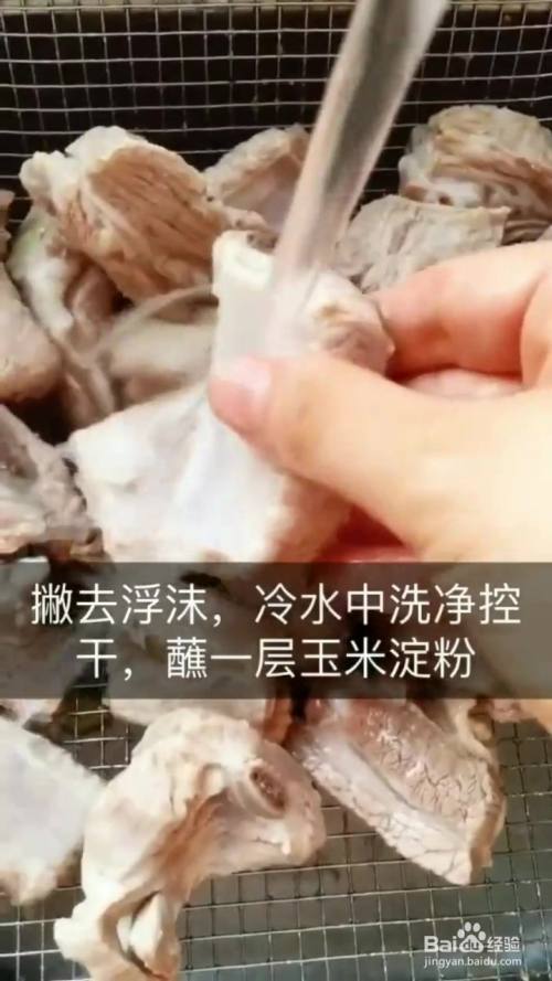 排骨冷水下锅 加入料酒姜葱 煮出血水捞出洗净 裹上玉米淀粉