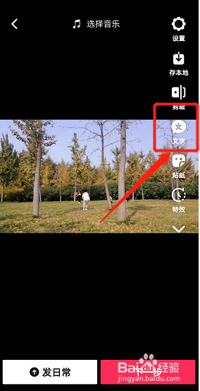 在抖音视频编辑页面,点击文字。