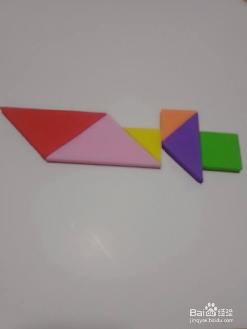 拿出粉色大号三角形板与红色拼接如下图所示。