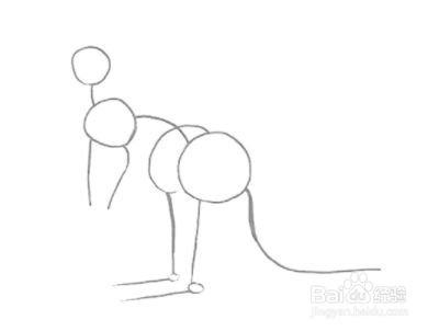 显示袋鼠身体一般比例的圆圈和线条。勾勒身体轮廓。