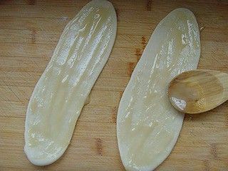 取一份面团擀成长条片,均匀的抹上油酥,撒少许盐。