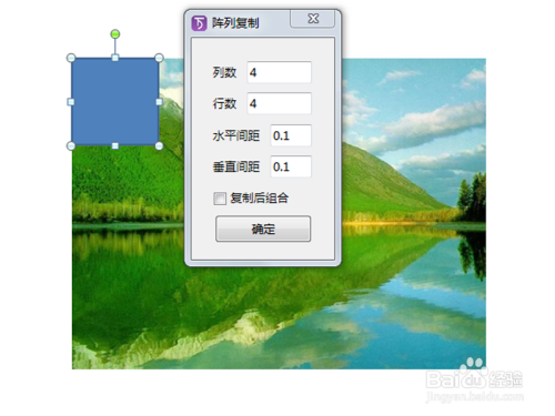 选择正方形,执行threed-阵列复制命令,设置4行4列,水平间距和垂直间距为0.1,点击确定按钮。