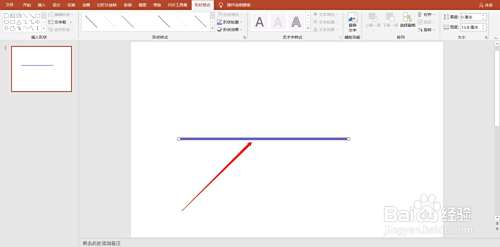打开ppt软件并在新建的幻灯片中插入一根直线。