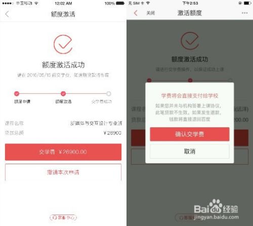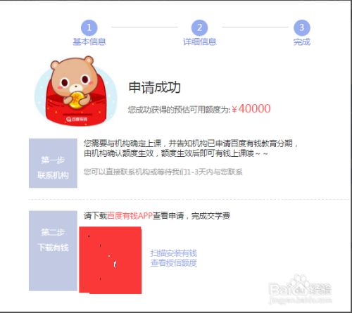 贷款成功:贷款申请通过后,在百度有钱花的申请贷款界面点击“交学费”按钮,并“确认交学费”后出现还款字样时,则代表贷款已成功。