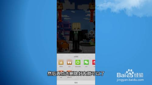 在我的世界点击好友,然后点击要删除的好友头像,接着点击分享按钮里的删除好友即可。具体操作如下: