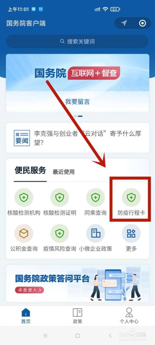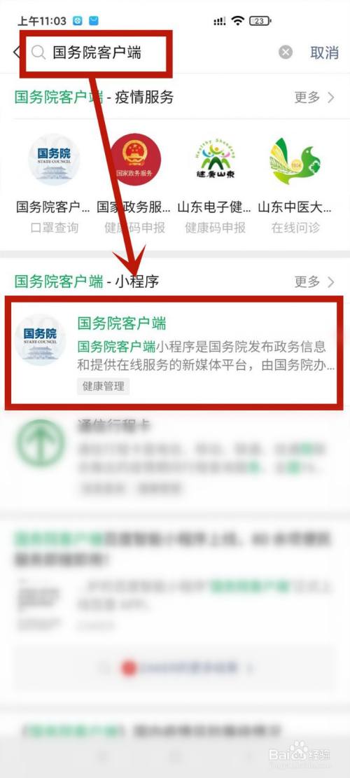 输入搜索国务院客户端,找到该小程序后点击进入。