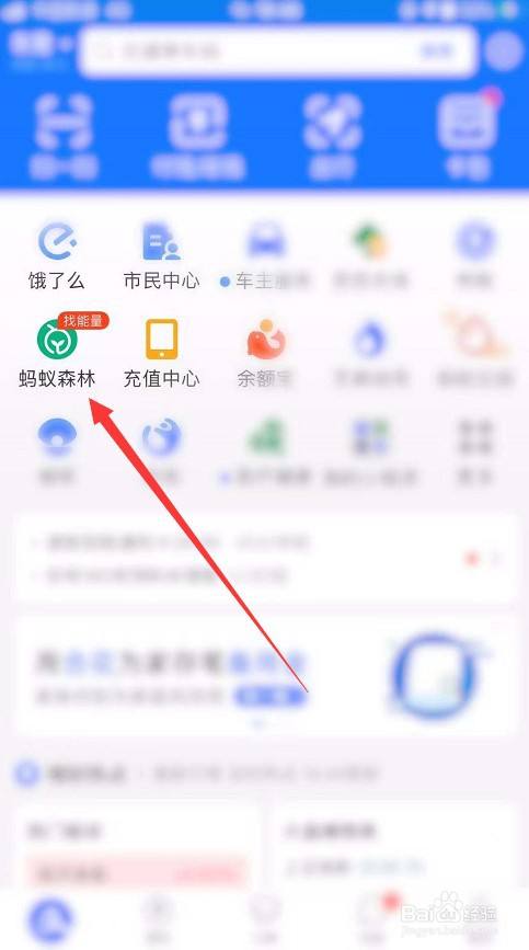 进入到支付宝后,点击功能区域的“蚂蚁森林”选项