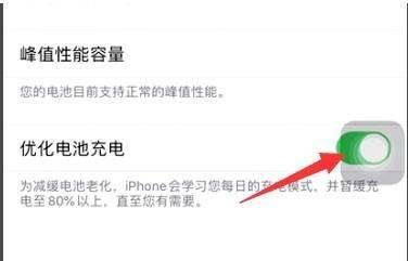4、进入到电池健康的界面里,我们开启优化电池充电功能即可解决iphone12充电发烫的问题