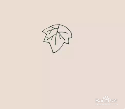 用折线在纸上画上一片叶子,里面竖下一条线,再左一条右一条的画出叶子的脉络。
