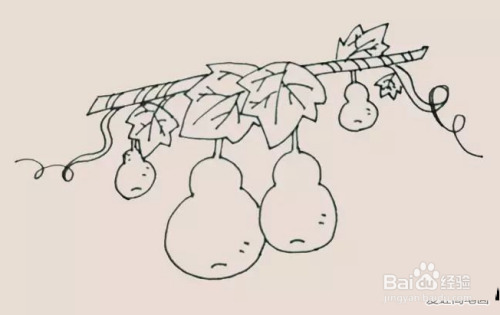画好了第二片叶子再接着画第二个葫芦,也像之前的葫芦那样画,只是更大一些。