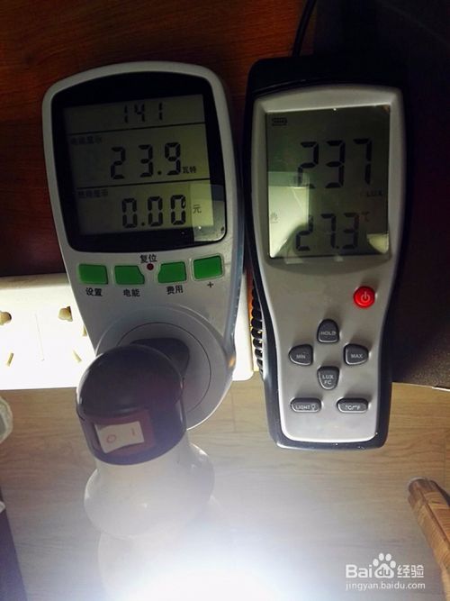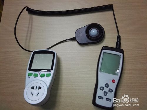 1为什么要同时使用“照度计”与“功率计”来进行测试对比呢? 原因是目前市场上的节能灯也好,LED灯也罢,很多的产品标称的电功率与实际功率都相差比较大,等我为大家测试完之后你们就清楚了。 由于制作工艺的不同,不同品牌的产品即使功率一样大,但照度也不一样,当然我们更加希望的是功率小而照度大。 照度是什么呢?照度即——光照强度:是指单位面积上所接受可见光的光通量,单位 勒克斯(Lux或Lx)。用于指示光照的强弱和物体表面积被照明程度的量。 照度计我们选用的是便携式照度计:它由二部分组成,一是感光头,另一就是照度表, 功率计我们选用的是功率计量插座(功率计费器), 二种测试仪长成怎样呢?详见下图,