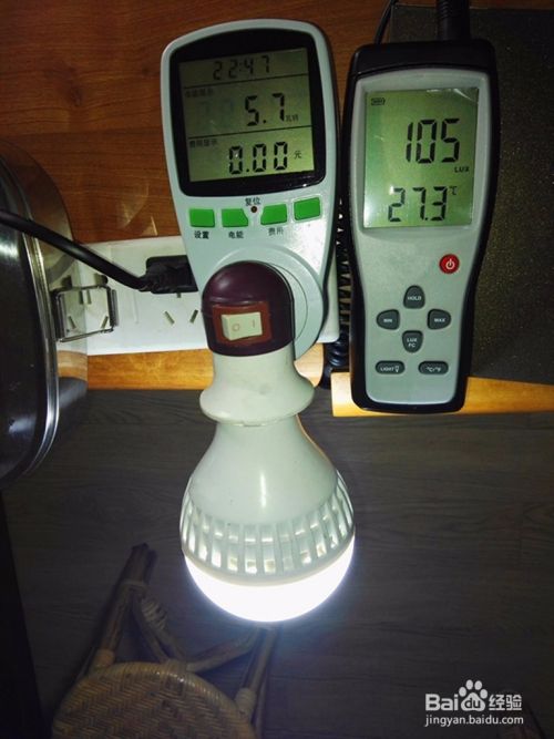 3首先让我们来测试LED灯的电功率与照度情况: 1 圆形LED灯泡: 标称:1.5W, 实际 :5.7W, 标称与实际功率差距:5.7-1.5=4.2W, 照度:105Lux, 每瓦照度=105/5.7=18.4Lux/W,