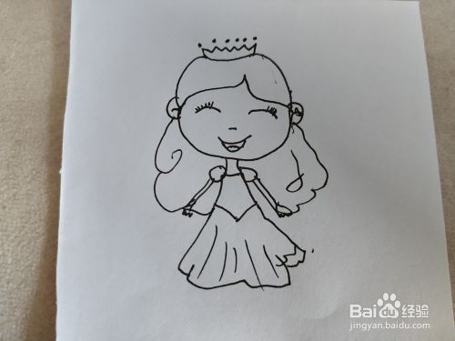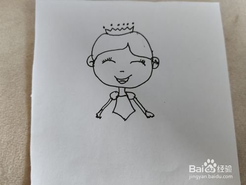 首先我们来画新娘子的头发轮廓,一个拱形,然后画头发上的皇冠,如下图