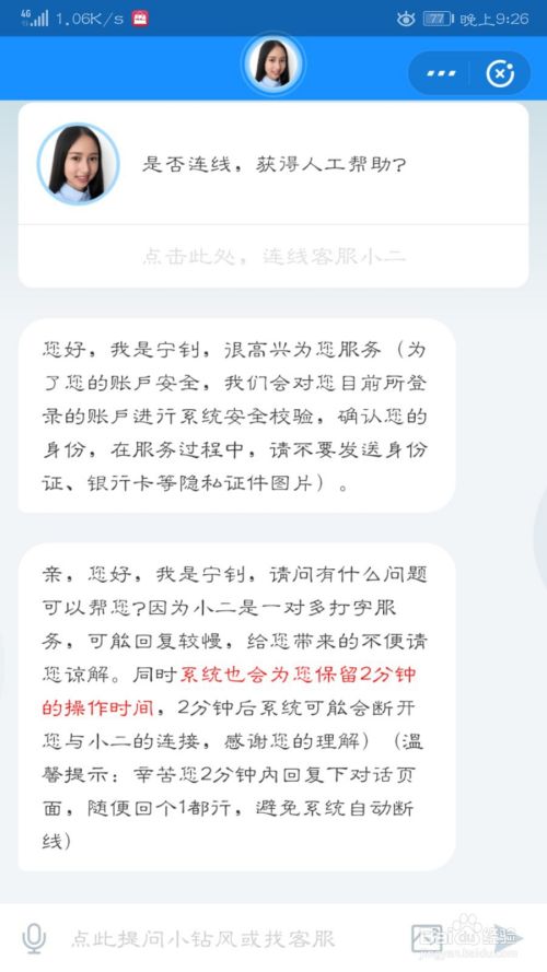 如果对咨询结果不满意,可以输入“人工客服”,此时会有“连线客服“选项,点击连线,就会跳转人工客服。